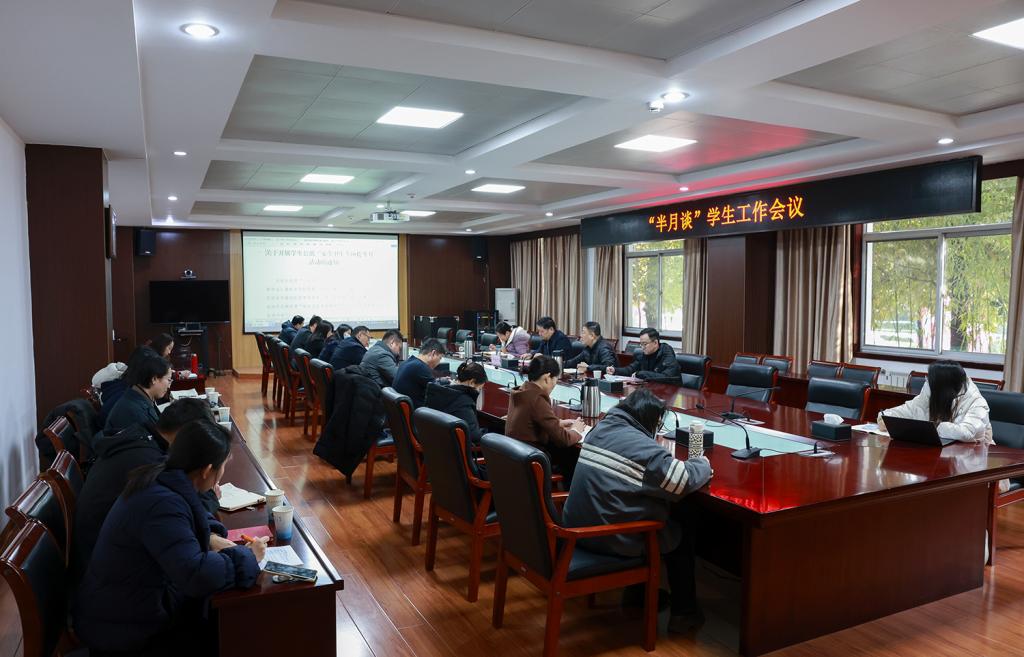 蒋海升强调,做好学生工作,一是要理清思路,统筹安排事务。学生工作任务繁多,要以体系化、模块化、项目化的方式对总体工作进行统筹规划和分类推进,明确“干什么、怎么干、谁来干、干出什么成效”。二是要聚焦关键,明确工作重点。要强化思政教育引领功能,突出目标导向、问题导向、成效导向,切实抓好意识形态、公寓安全卫生、学风建设、融法服务、高质量就业等重点工作。三是要项目推进,确保有序到位。工作中要做到传达部署到位、过程调度严谨、环节流程规范、收尾复盘及时,形成完整工作闭环,切实提升工作质效。