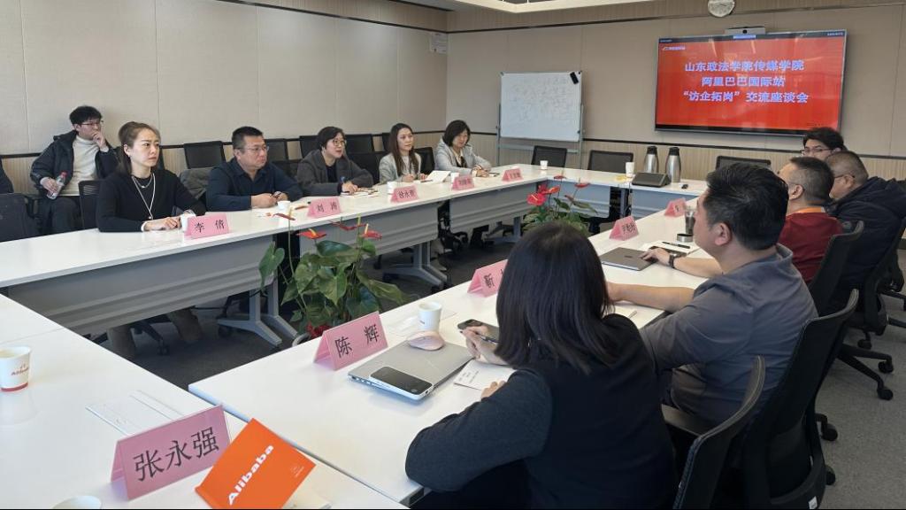 为深化产教融合、拓宽毕业生就业渠道,1月7日,传媒学院党委书记徐永青带队,党委副书记刘涛、团委副书记刘晓萌及辅导员、学生代表一行,赴阿里巴巴(山东)有限公司开展访企拓岗交流。阿里巴巴集团公益外派管理部总经理尹贻盼、济南出版社第三编辑室主任朱琦等参与座谈。