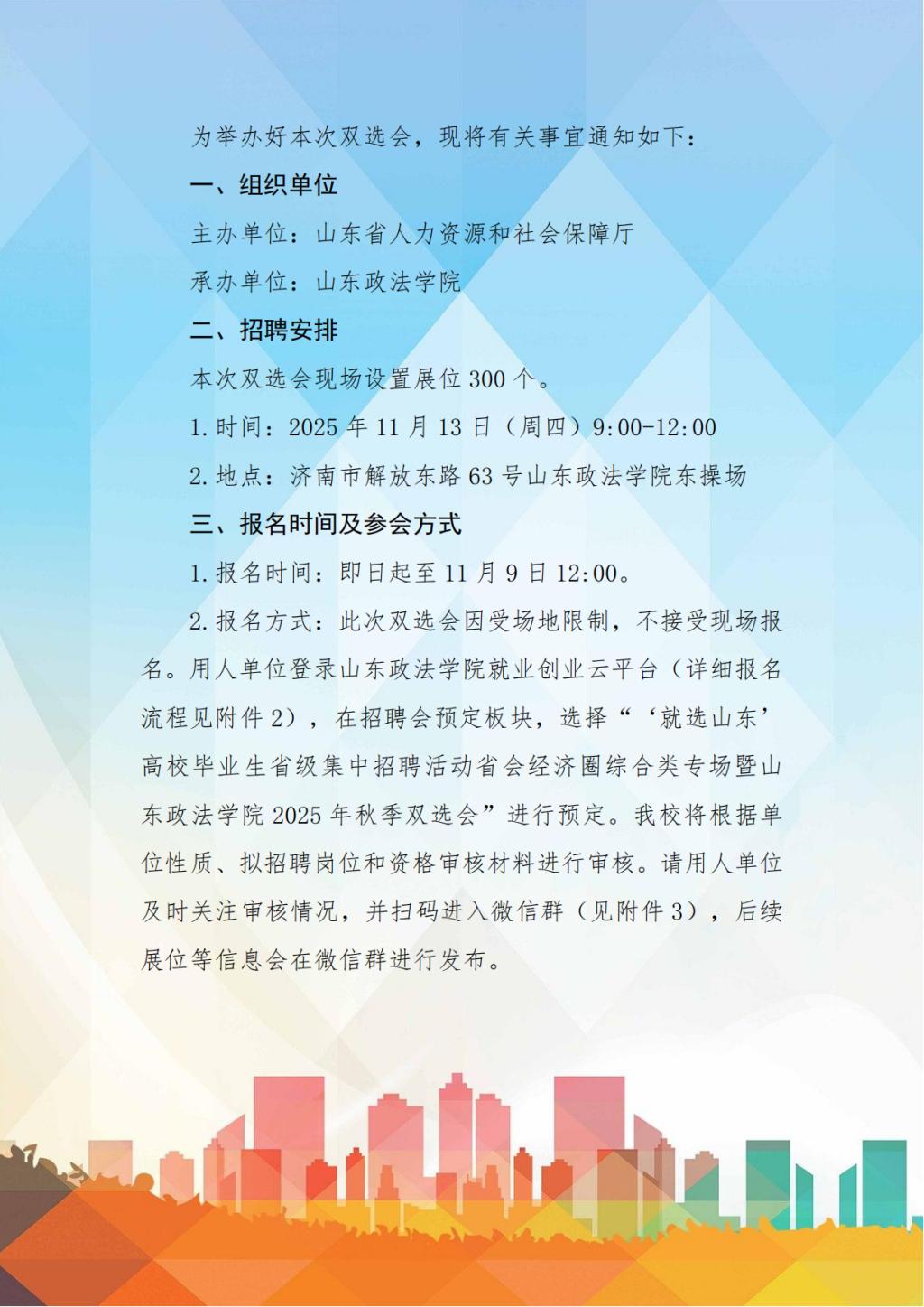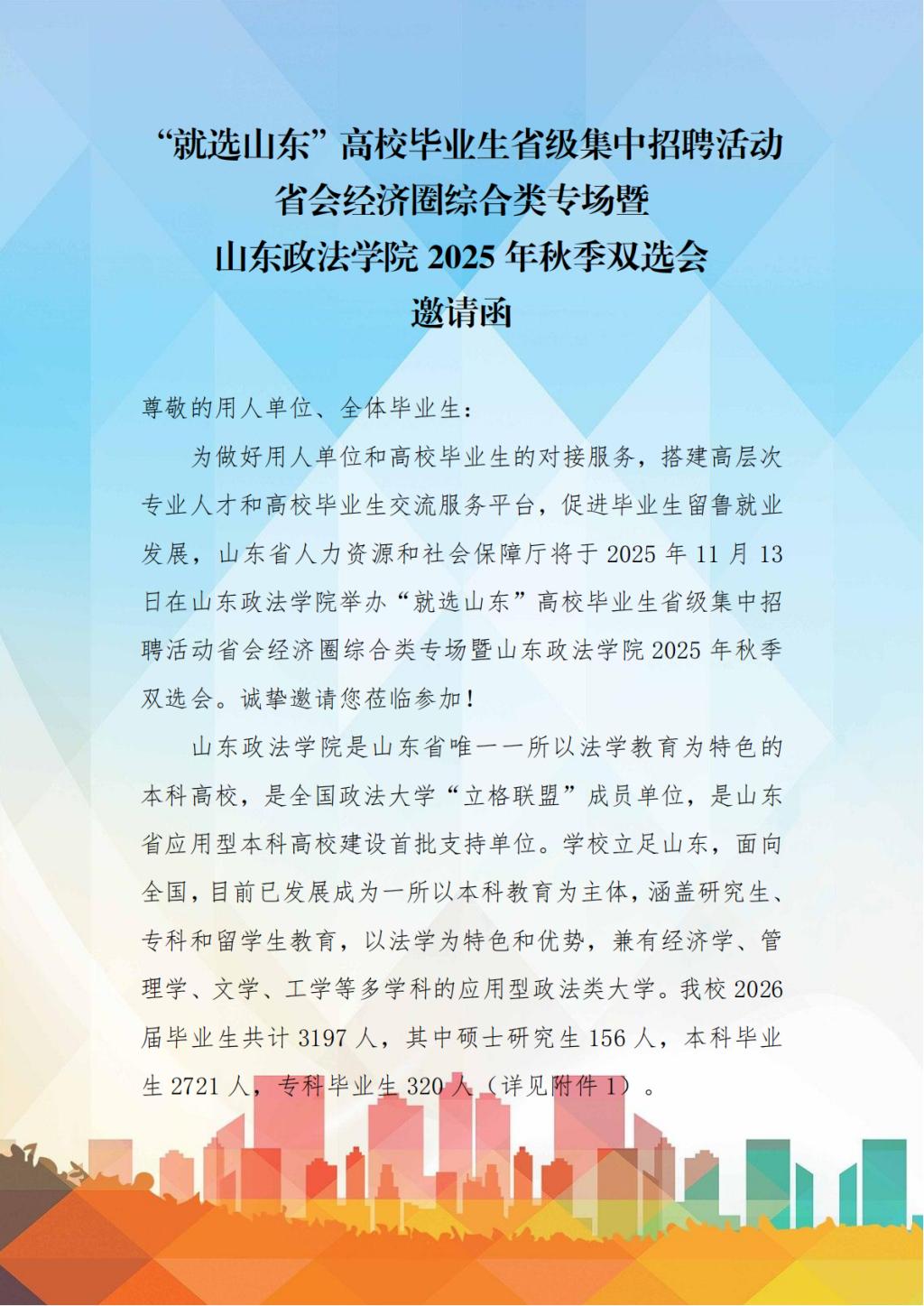 “就选山东”高校毕业生省级集中招聘活动省会经济圈综合类专场暨山东政法学院2025年秋季双选会邀请函